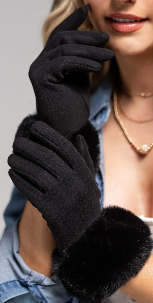 Luxurious Pin Tuck Gloves with Fur Cuff - Available in 3 Colors