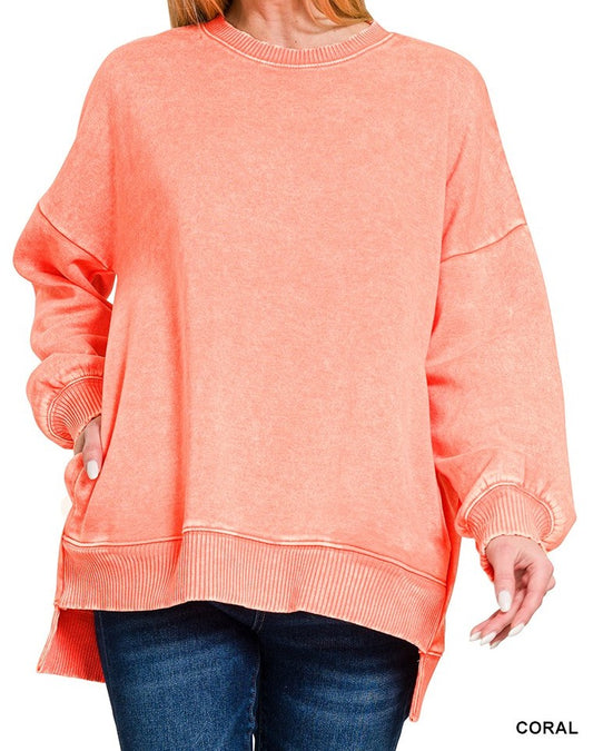 Acid Wash Exposed-seam Fleece Sweatshirt