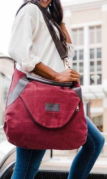 shoulder strap, exterior front pocket and interior zippered pockets. Size: 20" X 17"
